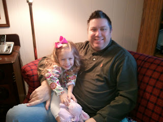 Uncle Josh, Aunt Beth, Ann Elise, & Morgan arrived. Josh got the Tickle Monster book to read to the girls!